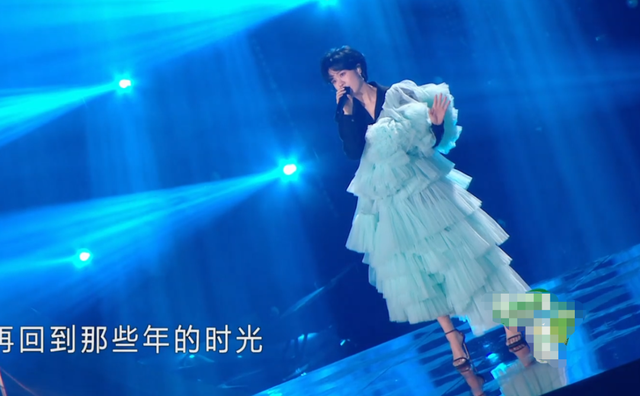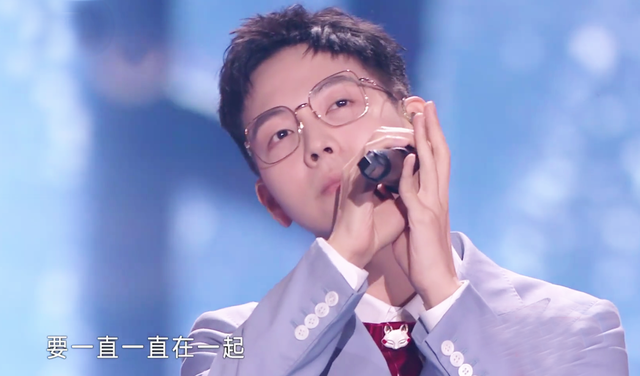 一身黑白箭头领西装,贵气十足有带点优雅的帅气。面对实力派歌手都走音、唱错拍的全开麦+辣耳音响,一首陈奕迅的《让我留在你身边》唱得深情款款,情感拿捏和舞台表现始终在线。