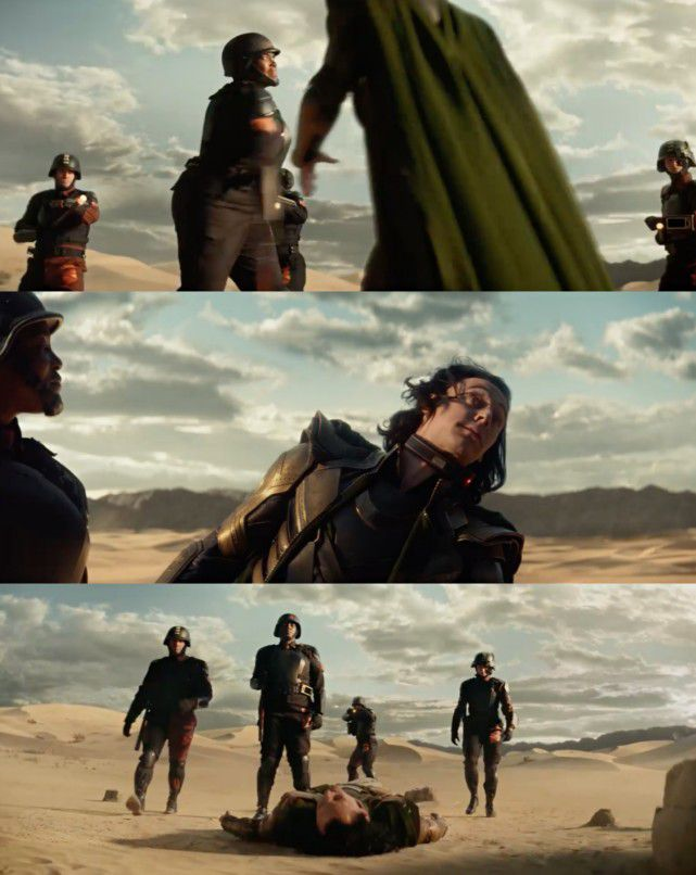下一个镜头,阿斯加德的王子、奥丁之子、尤顿海姆的王位继承人,连钢铁侠美队绿巨人对付他都头疼的诡计之神,就被随便一个时间管理局的士兵一棍子打成了表情包。