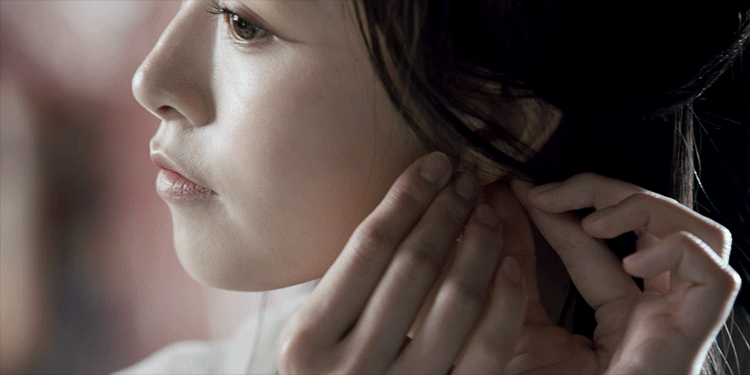 看镜头,一个全景,美人正梳妆,镜头拉近给到一个眼部特写,duang,一记浓重的眼线。确定这是王语嫣不是康敏的眼妆造型?