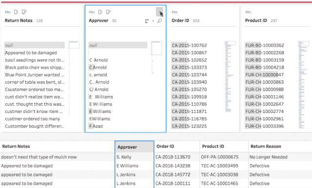 使用智能功能解决常见的数据准备问题。Tableau Prep Builder 采用模糊聚类分析,将重复任务(例如按读音分组)转化为一键式操作。
