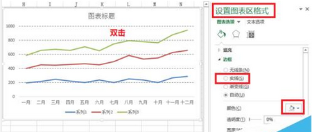 3、如图所示,双击网格线——设置图表区格式——实线——颜色——短划线类型。根据需要进行相关设置。