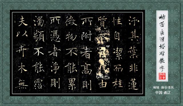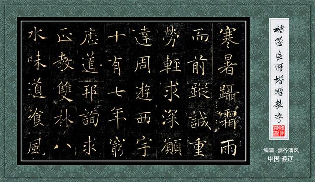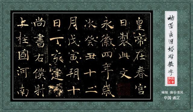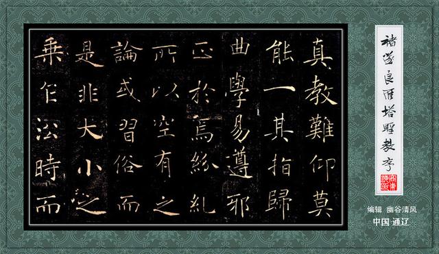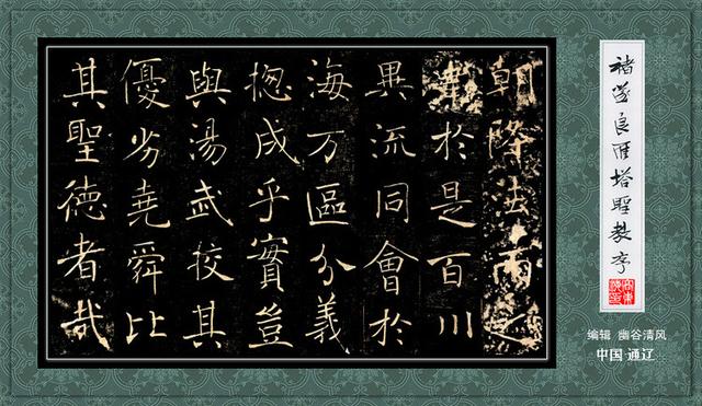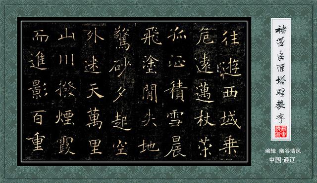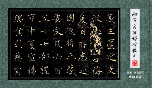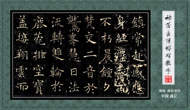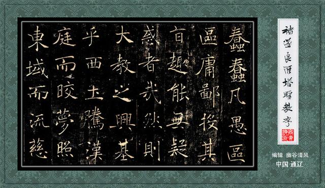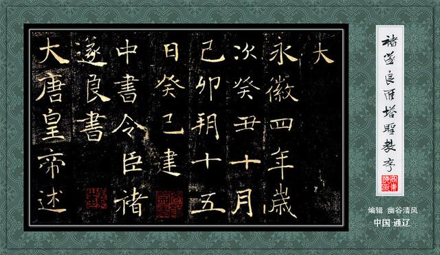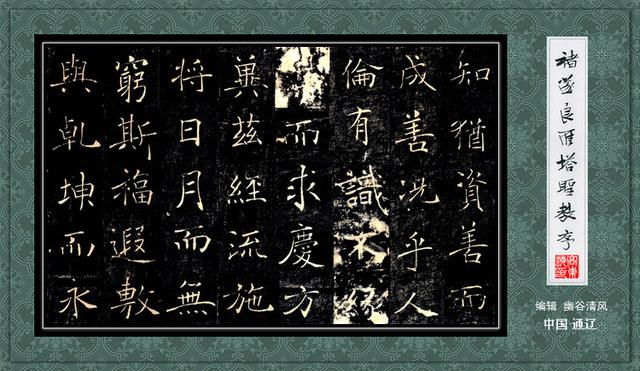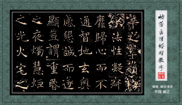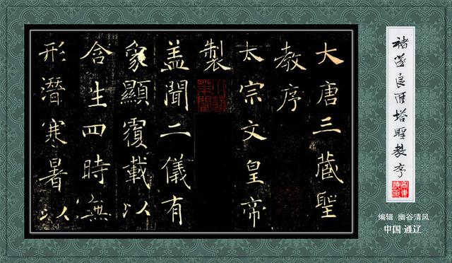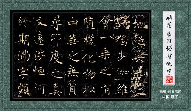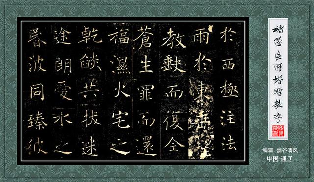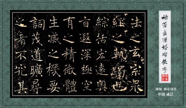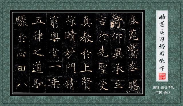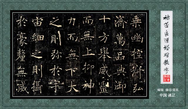 《雁塔圣教序》在运笔上则采用方圆兼施,逆起逆止;横画竖入,竖画横起,首尾之间皆有起伏顿挫,提按使转以及回锋出锋也都有了一定的规矩。唐张怀瑾评此书云:“美女婵娟似不轻于罗绮,铅华绰约甚有余态。”秦文锦亦评曰:“褚登善书,貌如罗琦婵娟,神态铜柯铁干。此碑尤婉媚遒逸,波拂如游丝。能将转折微妙处一一传出,摩勒之精,为有唐各碑之冠。”