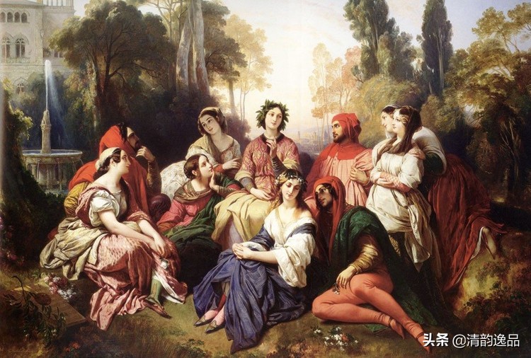 意大利作家乔万尼·薄伽丘(Giovanni Boccaccio,1313-1375年)编写的一本西方名著:10个青年人,其中7个女性3个男性,在佛罗伦萨的郊外躲避欧洲流行的瘟疫。10个人每人每天讲一个故事,10天10人讲了100个故事,汇编成为《十日谈》。
