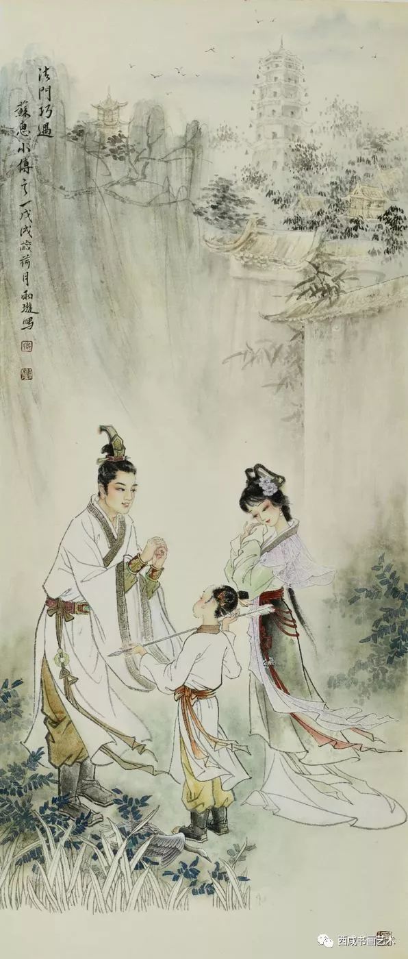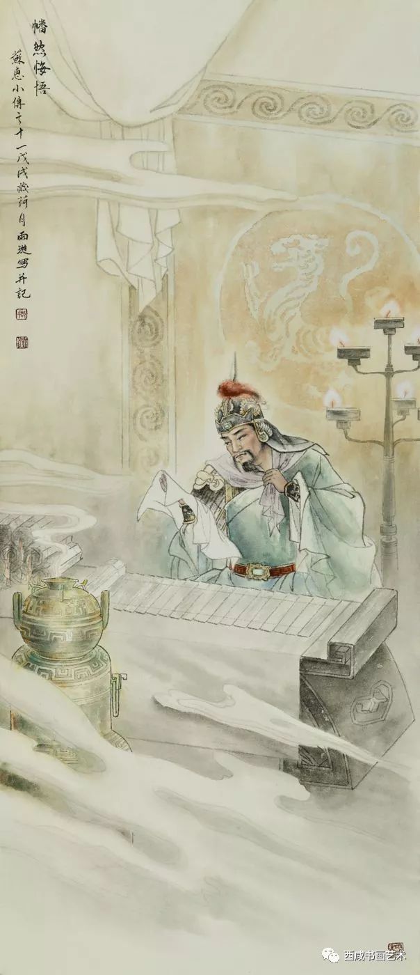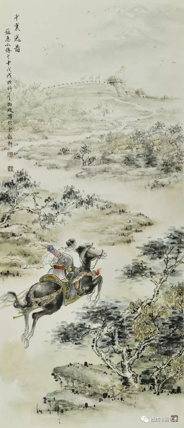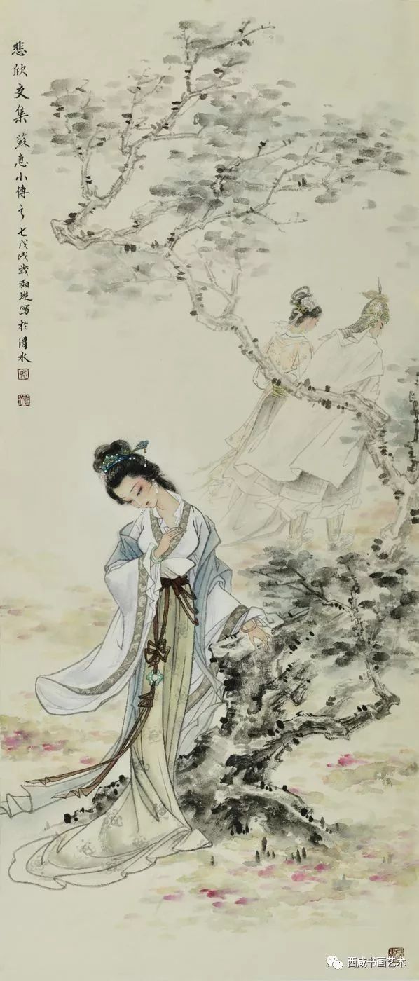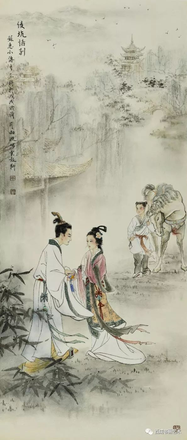 2017年,郭雨璇应陕西苏绘实业有限公司之邀,为公司《苏绘文化广场》及《苏绘锦悦府》而作《苏蕙小传》。自此她认真查阅历史资料,拜访学者、教授及璇玑图研究专家,到苏惠故事发生地及窦滔墓前采风,读璇玑图,感受一代才女的诗情才情和感情。苏蕙一生悲喜的起起落落,沉沉浮浮;苏蕙少女时的聪敏,巧遇恋人的惊喜;初为人妇的娇羞,别后相思的煎熬;遭遇命运突变时的痛苦与无助,寄情诗书与锦织的深情与柔韧,执著与坚定……,是她对苏惠及窦滔的人物形象有了一个比较全面的认识,人物性格在她心目中也更加丰富和完善。一年来,她为完成《苏蕙小传》十二幅作品感到高兴,更为读到才女的诗文而感到充实和欣慰。她说:公元2018年,隔着时空读完苏蕙的一生,感佩她的坚韧与才情,感谢她如镜,照见我智慧的黑洞