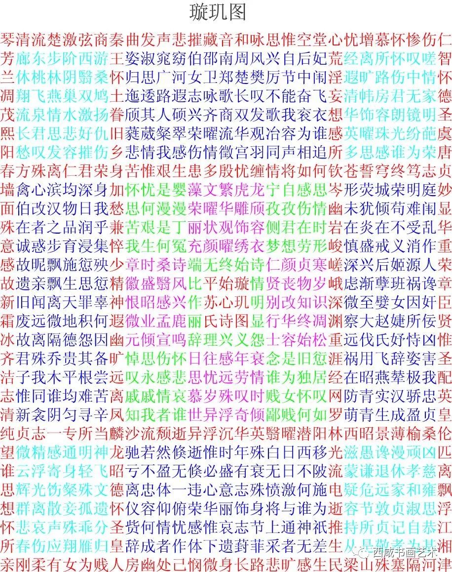 再据武周朝女皇 武则天曾为织《 璇玑图》写序 历代刊于图前;又南宋女诗人钱唐幽栖居士 朱淑贞所写《 璇玑图记》,记述 窦滔放逐流沙后, 苻坚正在 南图灭亡东晋,想到窦滔文武才略,起用他为 安南将军。随其子尚书令苻丕攻占东普襄阳‘ 窦滔宠爱 一歌 舞妓赵阳台,此事被留在家乡的 苏蕙得知,悲愤哀怜,月 夜空帐,孤寂怨恨,吟诵成诗7958首情丝绵绵织绣成841字的锦绣回文图,名曰《 璇玑图》,寄于负心的 窦滔。窦滔读到这些情意真挚悲切 的诗文,良心发现,痛恨行为之不检,遣离情妇赵阳台归关中;具备车舆礼邀迎接 苏蕙到襄阳,从此 夫妻情好如初。