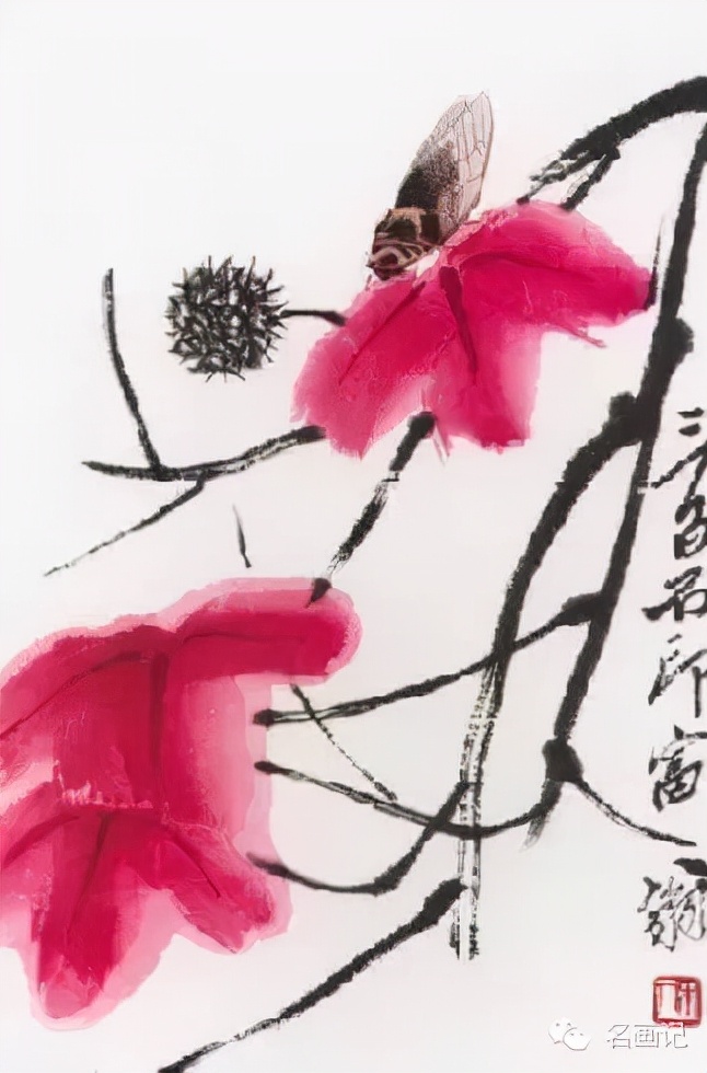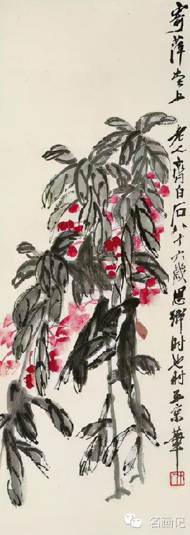齐白石主张艺术“妙在似与不似之间”,衰年变法,形成独特的大写意国画风格,开红花墨叶一派,尤以瓜果菜蔬花鸟虫鱼为工绝,兼及人物、山水,名重一时,与吴昌硕共享“南吴北齐”之誉;以齐白石纯朴的民间艺术风格与传统的文人画风相融合,达到了中国现代花鸟画最高峰。