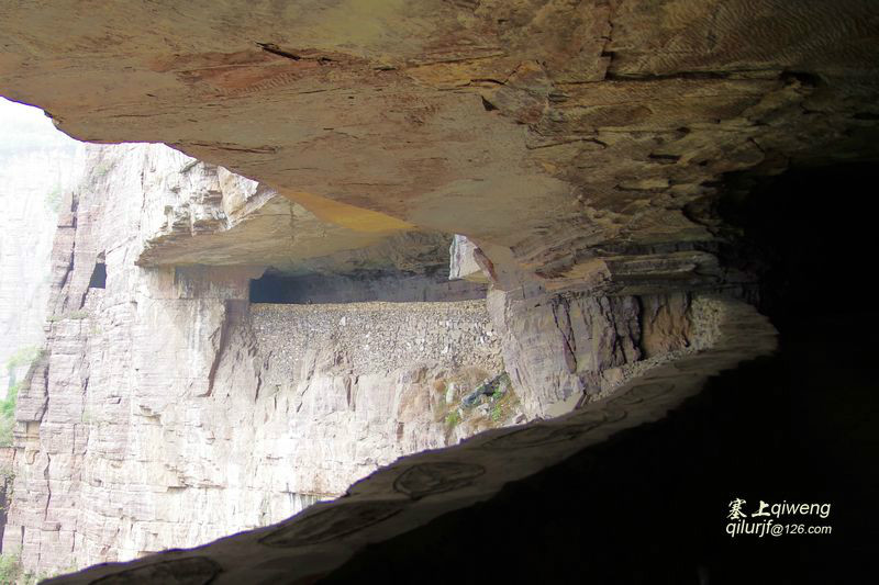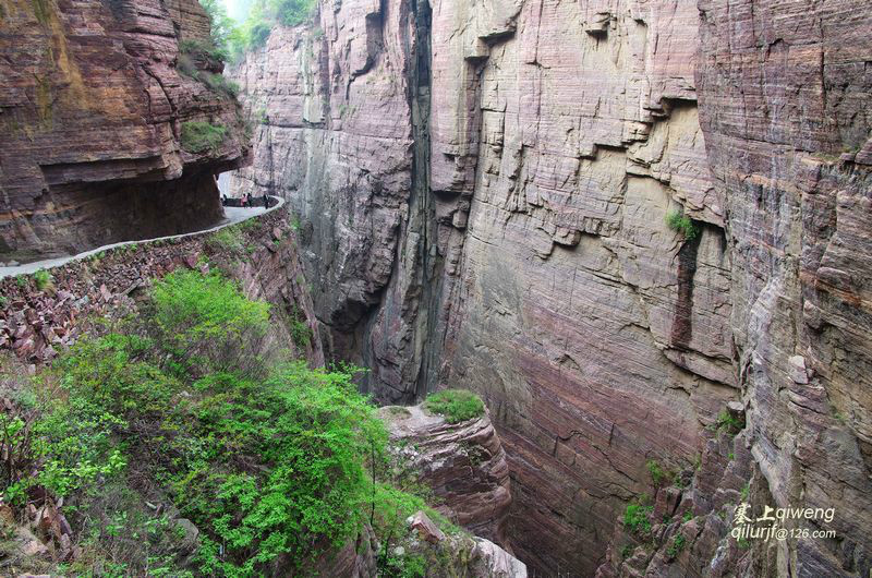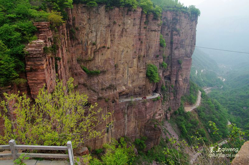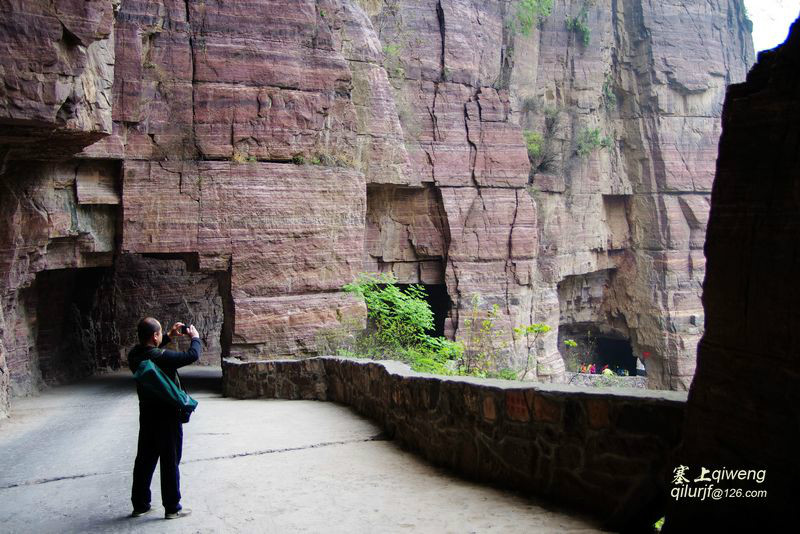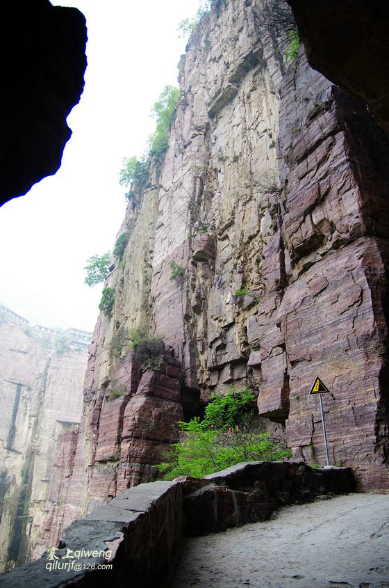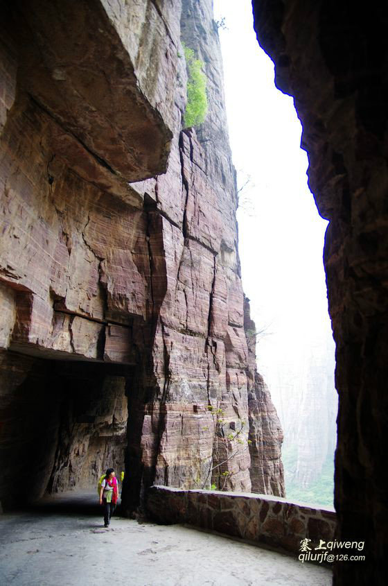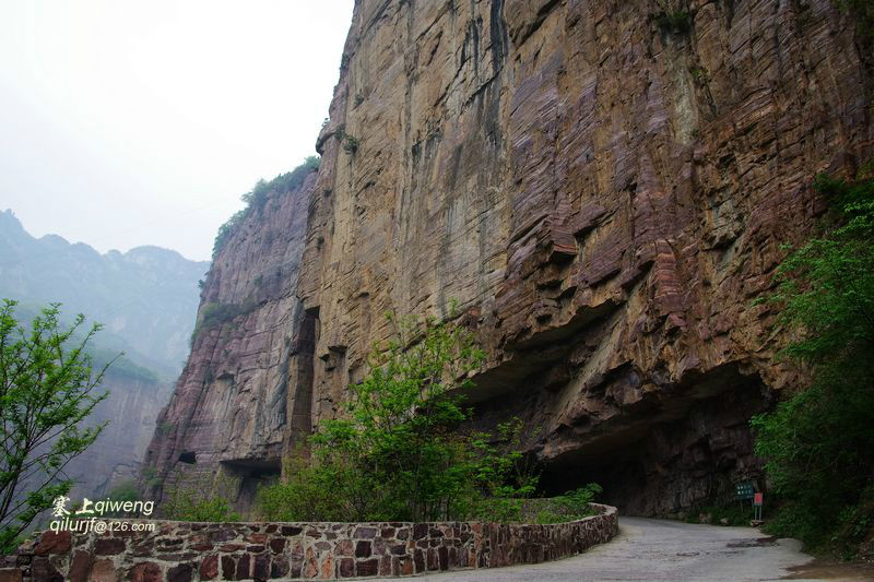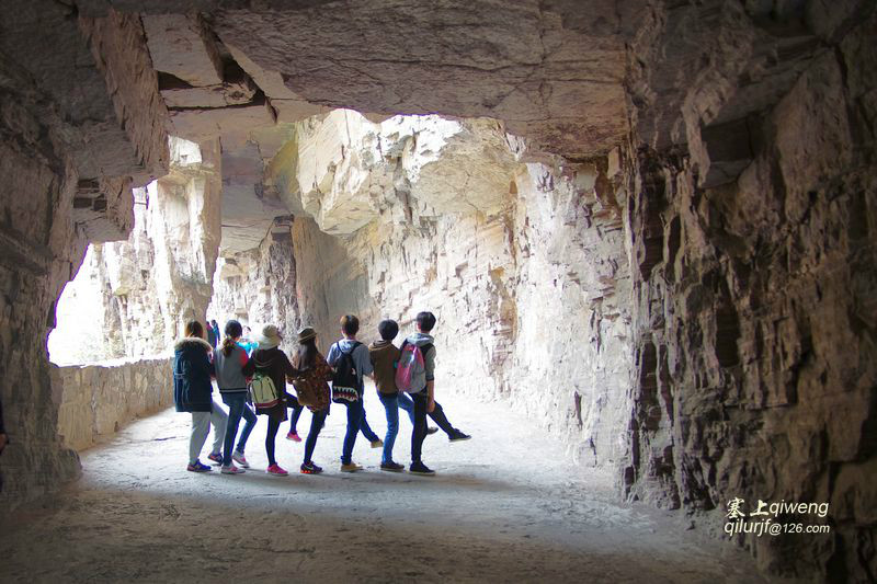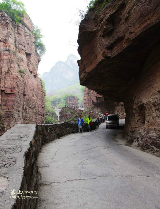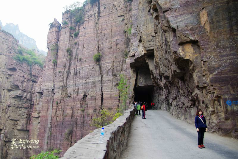 前些年,所有的车辆、行人出入郭亮村只有这一条通道,上行下行会车时显得不够宽敞,游览和拍照时需要特别注意安全。
