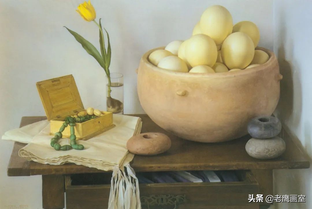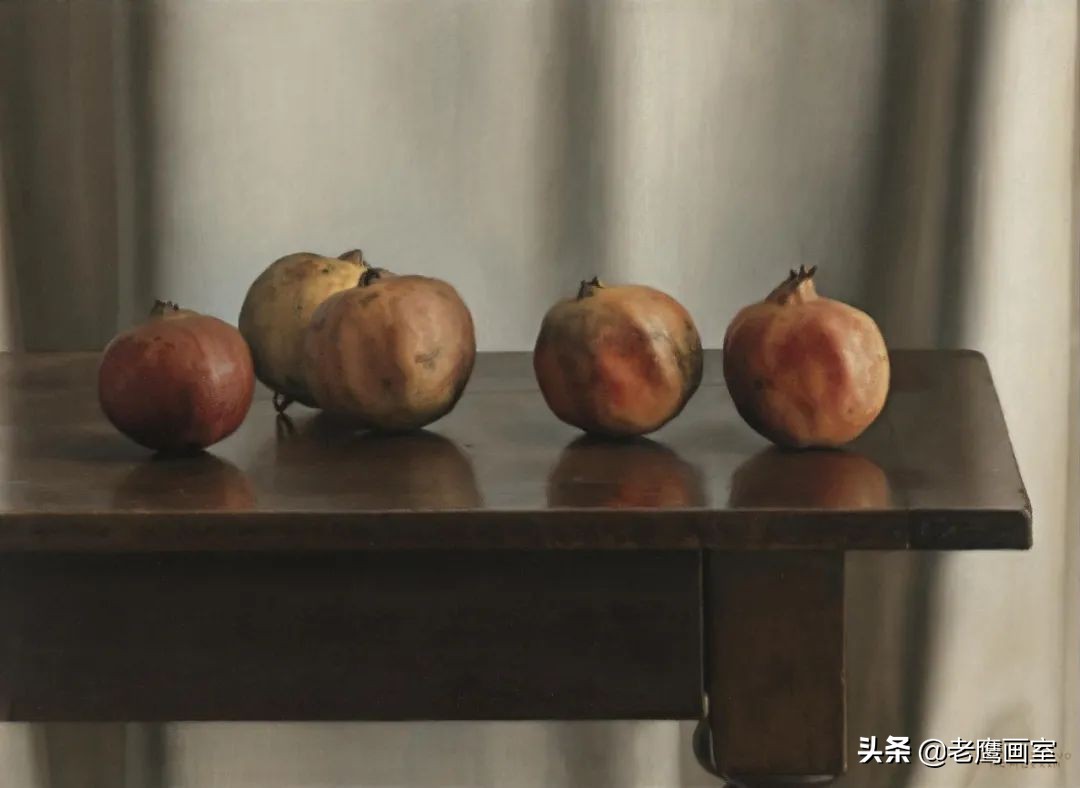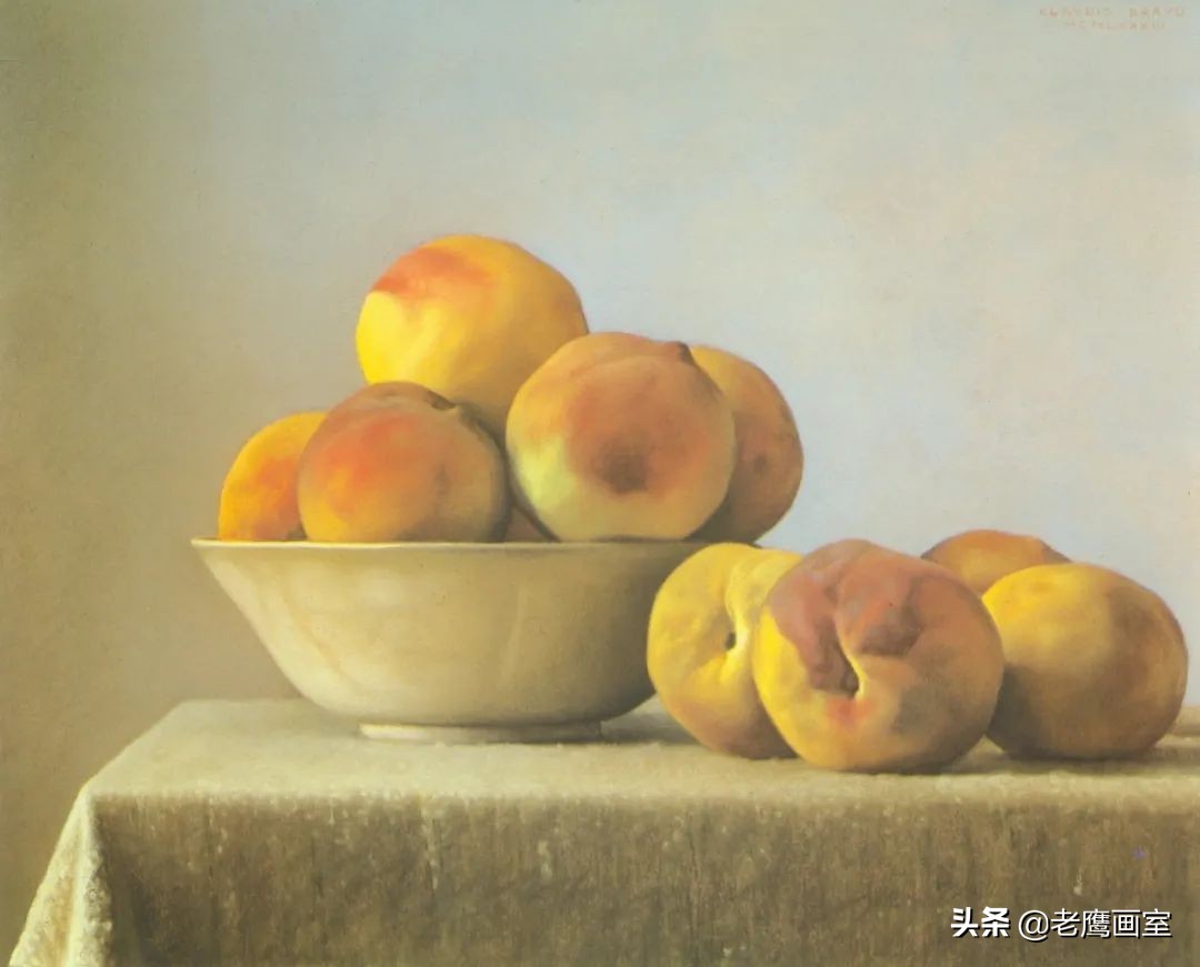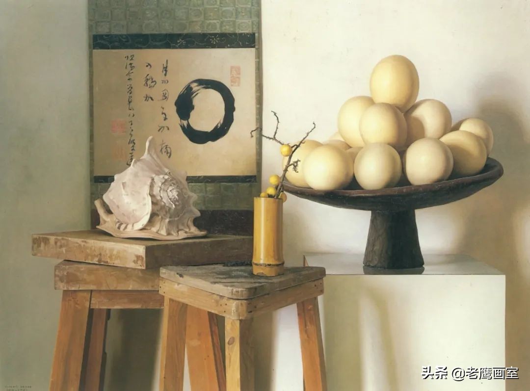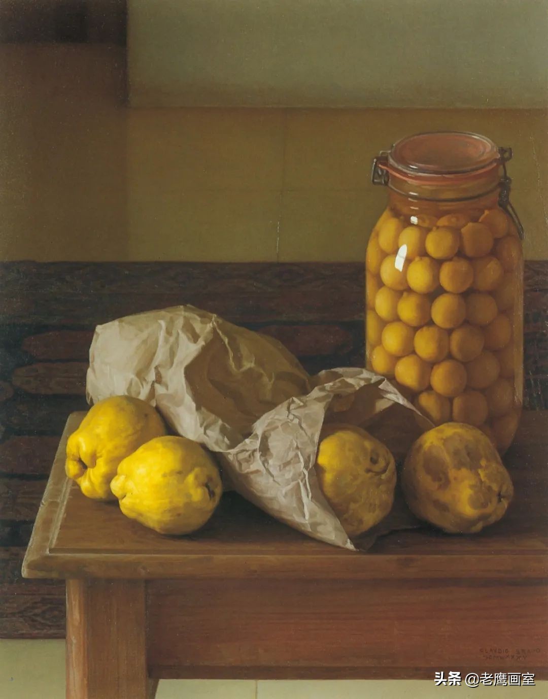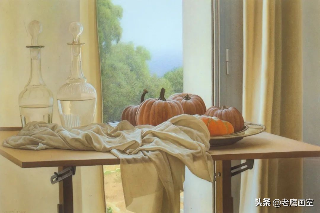 他的静物画中的静物是有生命的,这些鸵鸟蛋、柠檬、桃子、南瓜、鸢尾花、器皿,等等,无一不渗透着画家的情感,画家将其作了拟人化的处理,赋予其人的品格和个性,并使其充满了一种典雅、理智且朴实、自然的审美趣味。