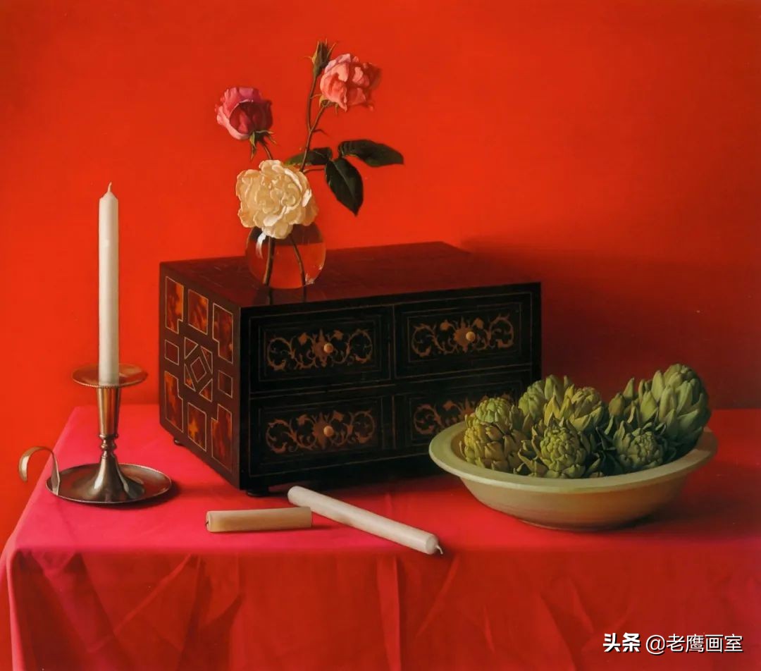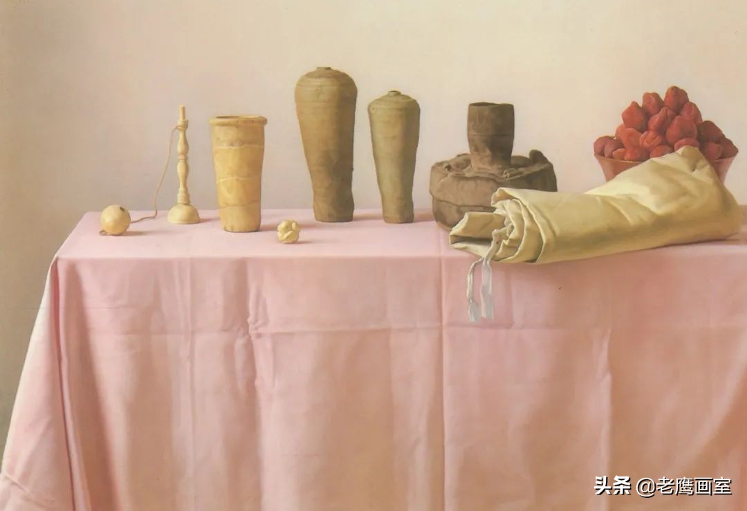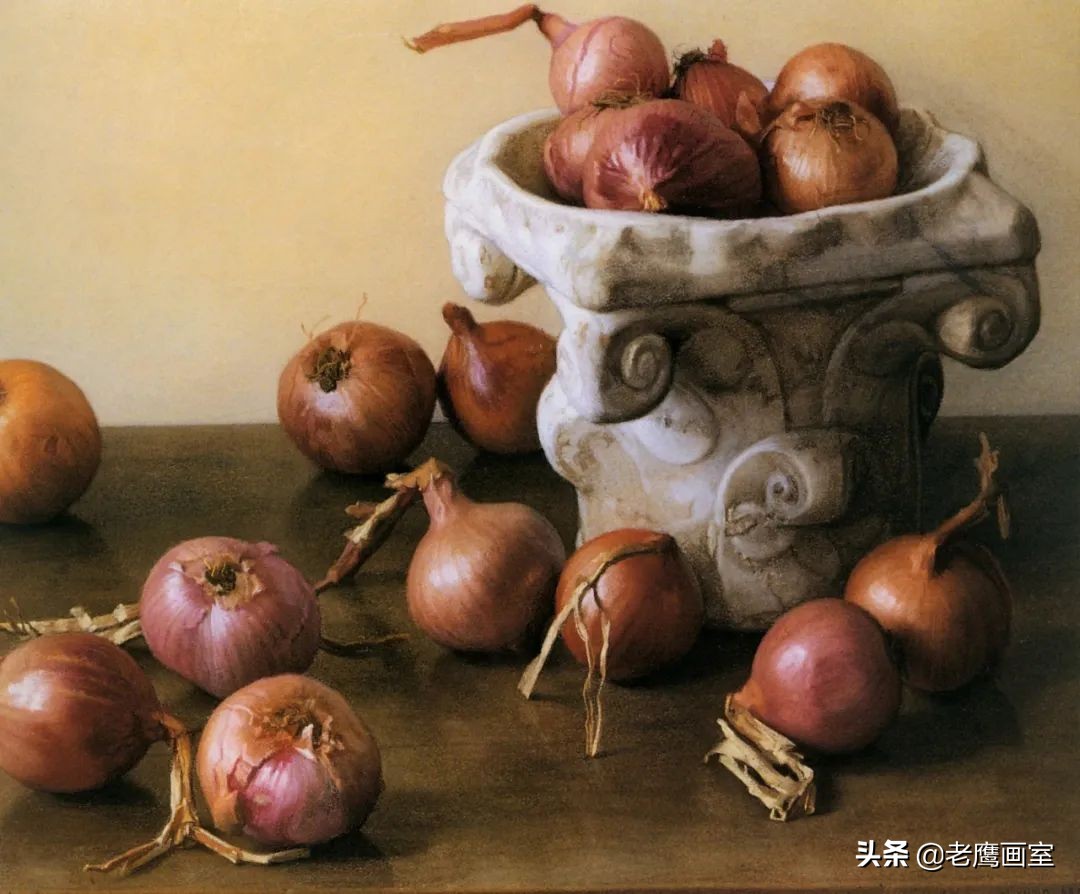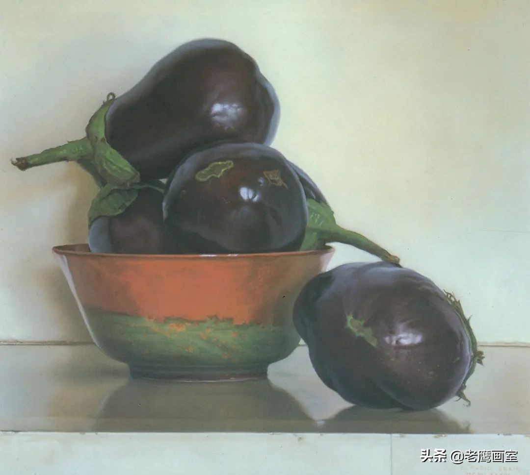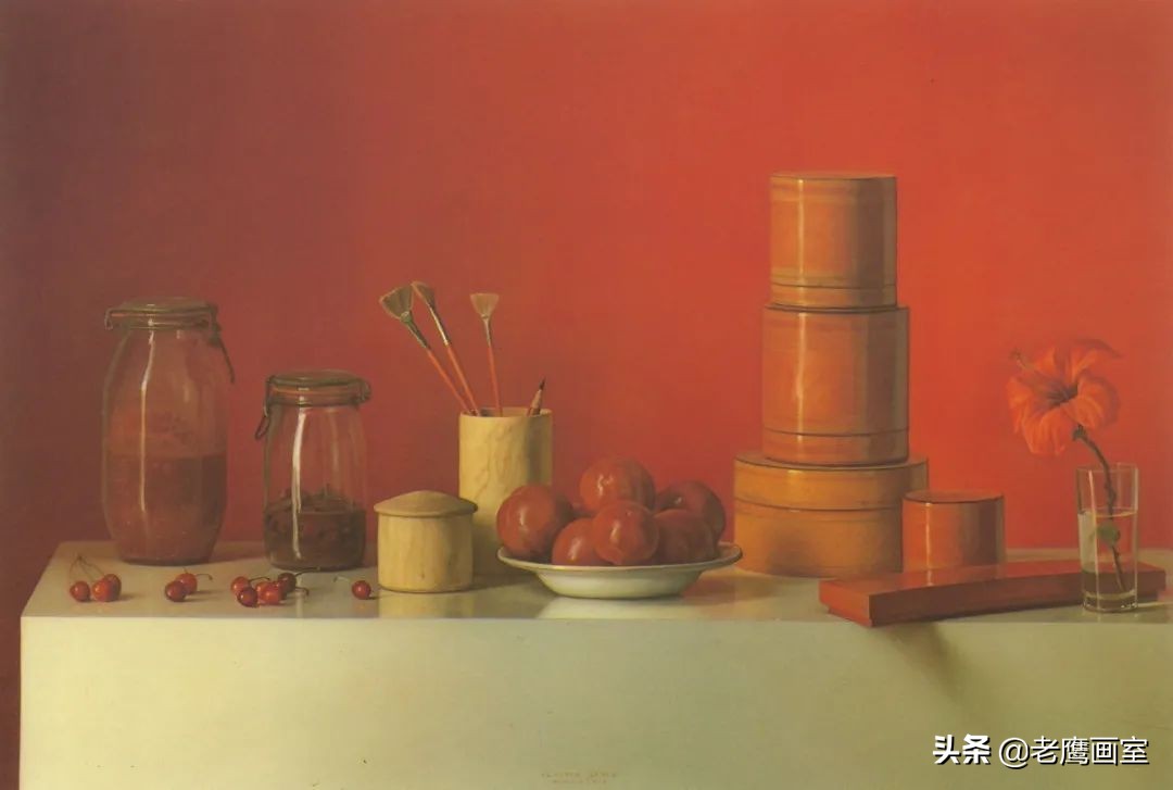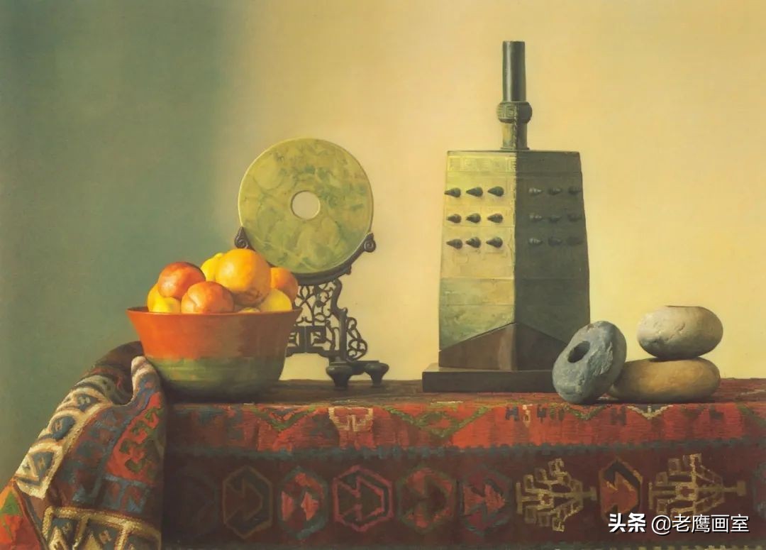 他的静物画中的静物是有生命的,这些鸵鸟蛋、柠檬、桃子、南瓜、鸢尾花、器皿,等等,无一不渗透着画家的情感,画家将其作了拟人化的处理,赋予其人的品格和个性,并使其充满了一种典雅、理智且朴实、自然的审美趣味。
