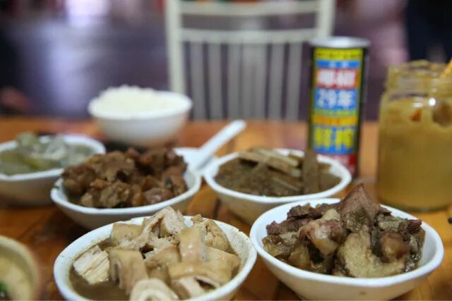 下午五点,从府城忠介路穿出,在西边入口处会发现一家没招牌的小店。周围人头攒动,挤在橱窗前挑选下饭菜。两口大锅一个煮猪脚,一个煮牛腩,一旁码着煮好的猪杂、酸笋,每一样泛着诱人的光泽,肉香直勾勾地钻进鼻子,挑逗着味蕾最原始的欲望。