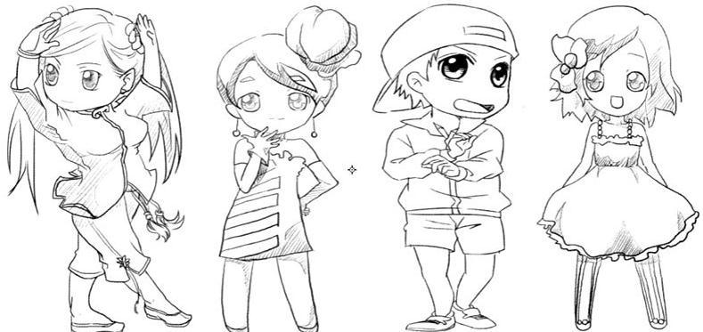 4头身Q版人物基本相当于正常头身比例的小孩子体型,但是从表情、动态、服饰上还是能够看出属于Q版角色。