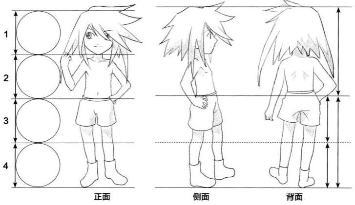 3头身人物的身体平衡度最好,头部、躯干、腿的比例大约是1:1:1。腿部开始有变长的趋势。