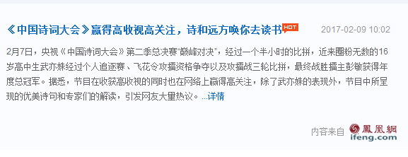 不过,今年春节这场诗词比赛,的确让典雅的古诗词侧身各种小鲜肉、明星绯闻和经济事件中间,成为了老百姓2017年的一个关键词。