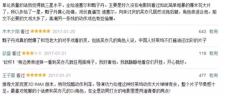 影片之中加入足够的中国元素,而甄子丹与吴亦凡的加入也告别了中国人打酱油的尴尬处境,从目前可以看到的口碑来看,这两位很融洽的融入影片整体之中,
