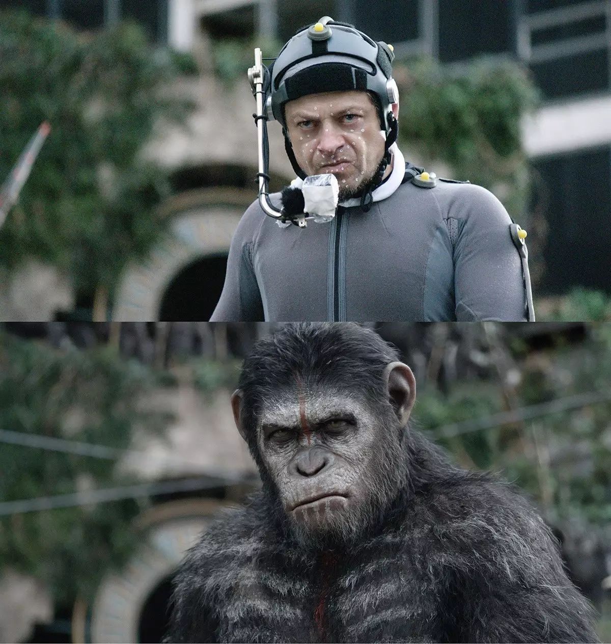 原来影片中兽人特效全靠动作以及面部表情捕捉,吴彦祖饰演的古尔丹就是他通过肢体动作和面部表情的捕捉而合成出来的,通过兽人与演员同框,分别用半张脸合成一张脸,吴彦祖的角色和演员在特效前后对比才能显露出来。
