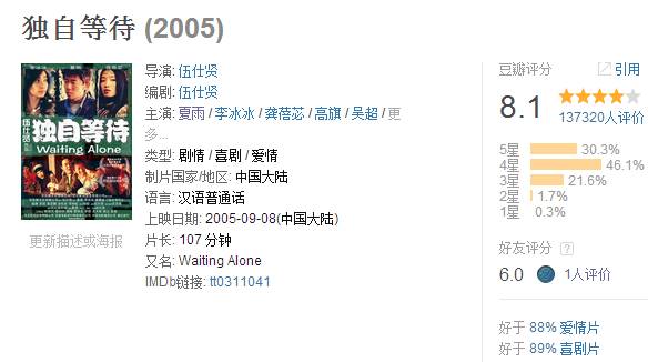 2005年处女作《独自等待》就受到不少的关注,别看是一个烂俗的青春题材,但是在伍仕贤的镜头下,显露出不一样的火花,影片中更不乏大咖加盟。