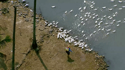 河水边肆意喷洒的农药