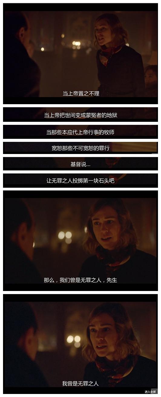 传教士接下来的这一段话,涉及到圣经中“投掷第一块石头”的典故。绝对清白的人,才可以下手执行“所谓正义”。
