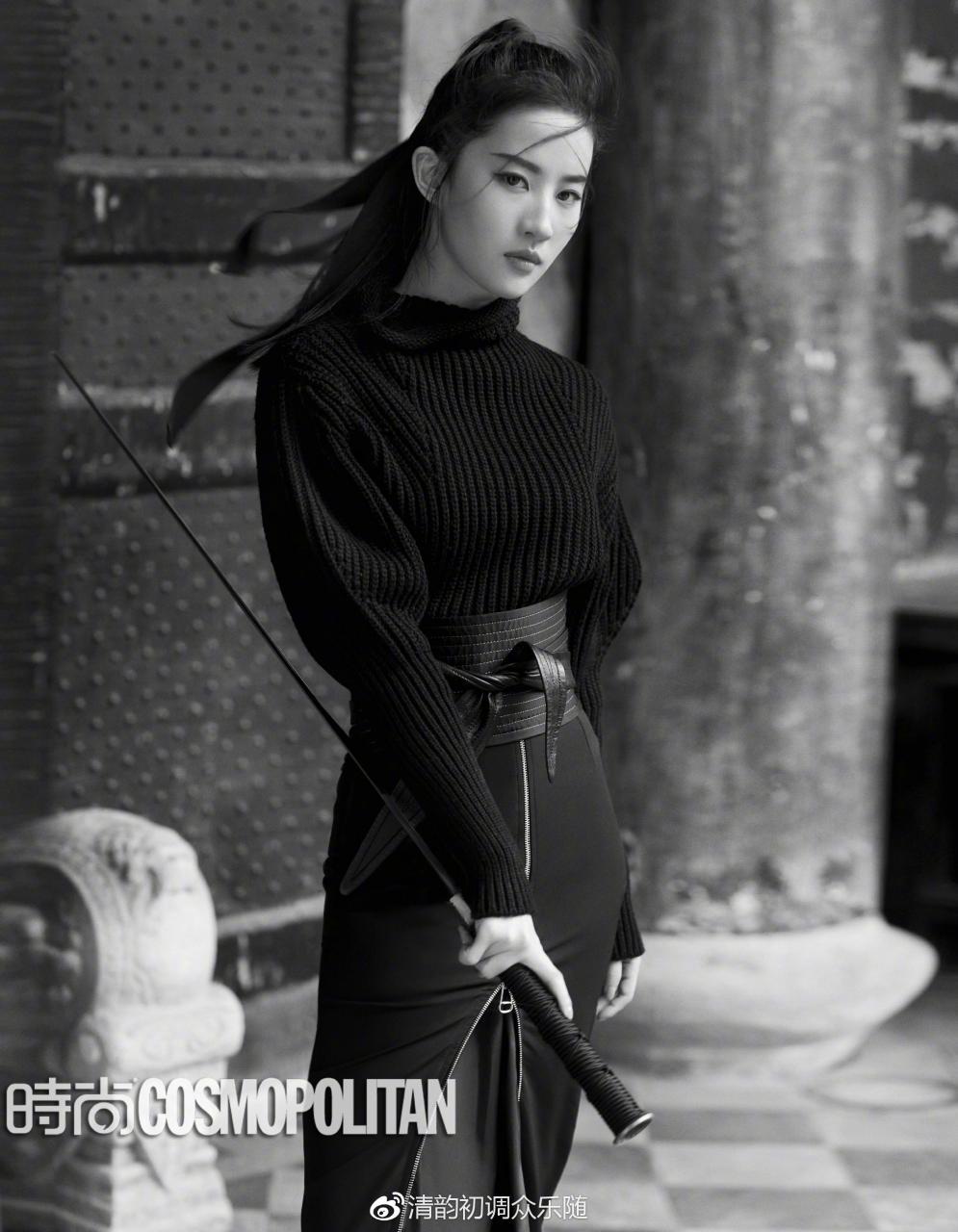 至于气势什么的,角色定了之后,之前柳宗源给她拍过的那组《时尚cosmo》的图就一直被拿出来,片子整体走了一点侠客风,效果还是挺不错的,英气有余。