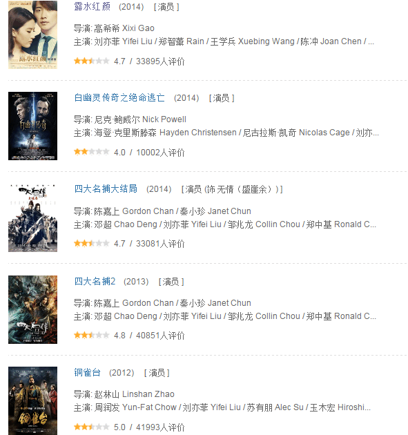 而近五年来的电影作品,豆瓣评分连上5都很艰难。