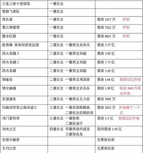 不仅仅是前不久才被恶嘲的《三生三世十里桃花》,实际上,她除了刚出道的几部电视剧评价尚可,后续的影视剧表现一直很差,而且是从评价到票房全方位的差。