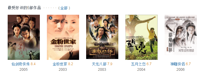 评价最好的五部作品,清一色都是早期出演的电视剧。
