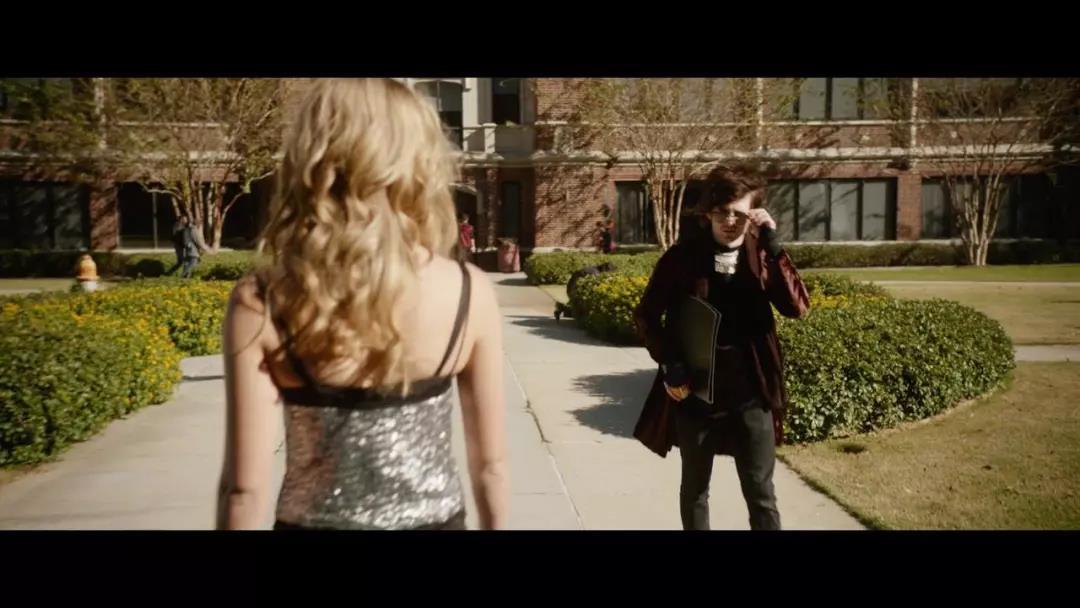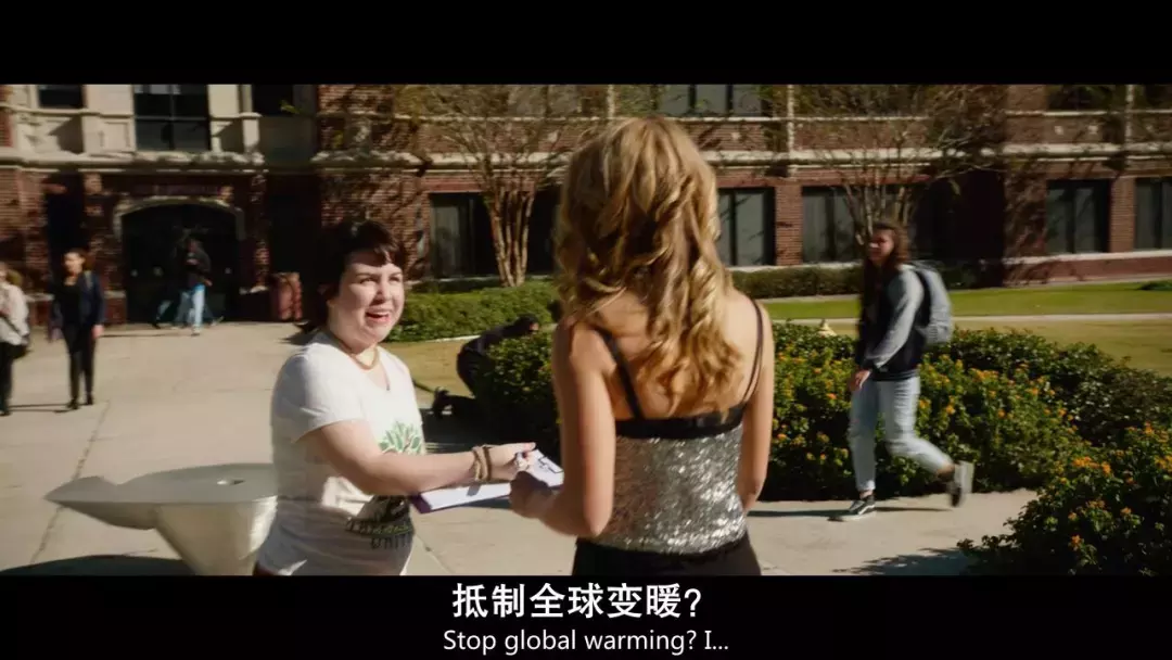 女主角起床,问男生要了两片止疼药缓解宿醉的头疼,然后走出男生宿舍,一路上,她碰到了打扮得很嘻哈的嘻哈男孩,半拉下眼镜斜着眼睛看她。