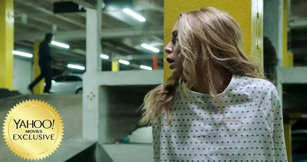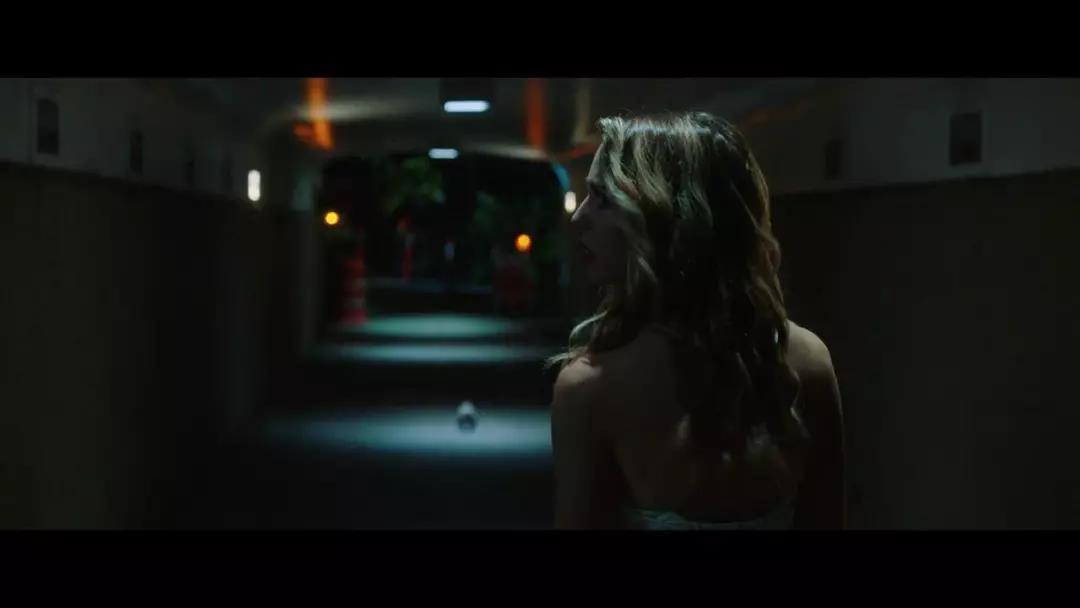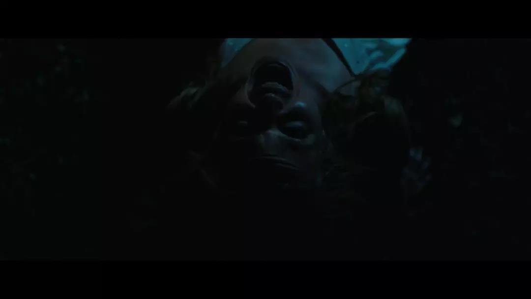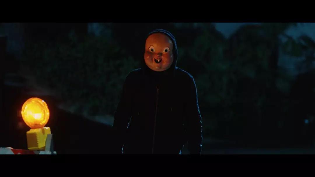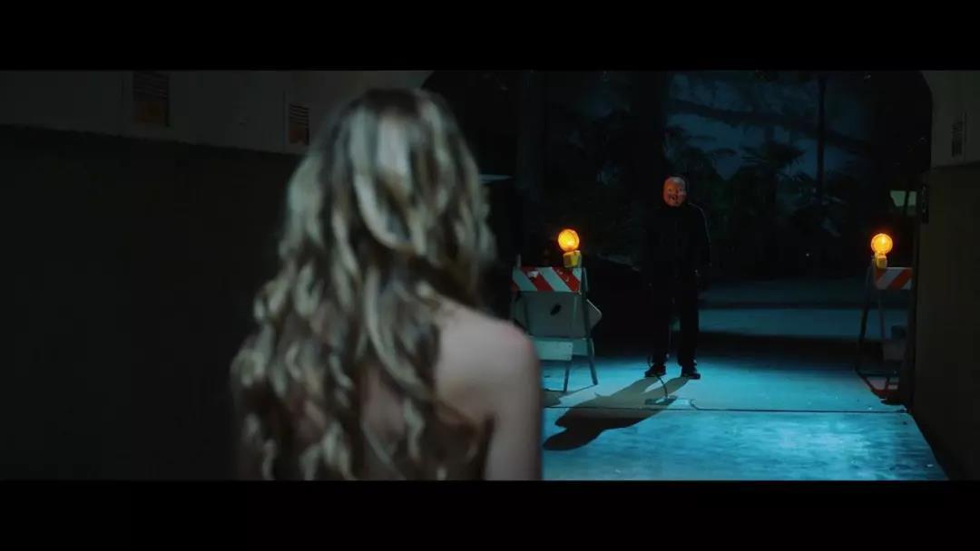 女主角反复试图沟通,从友善地问要不要帮忙到骂脏话,面具人始终不发一言,旁边的灯光一明一灭,面具人的脸也忽明忽暗。