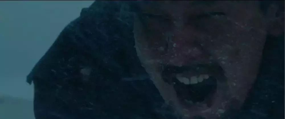 要说,这些感情戏的动人程度还不及影片接近结尾的时候吴富春的一个特写镜头的万分之一:身体状态和精神状态都接近崩溃的吴富春,顶着可以掀翻人的风雪,张大了嘴在嘶吼,宛如困兽在做最后的搏斗。