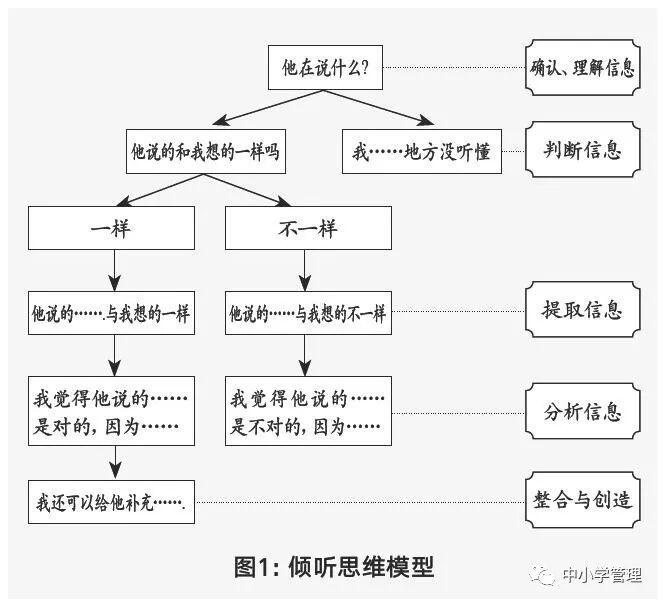小组合作学习强调学生之间的交流与互动,交流互动的结果或是形成共识,或是形成几类不同结论,这一过程需要个体对他人意见的倾听以及在此基础上的进一步筛选和加工。通过个体倾听思维模型的引导,学生不仅能够学会有序分析他人观点,更是形成了团体决议的基础(见图1)。