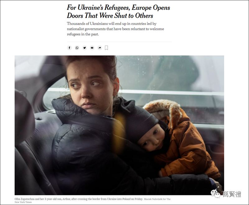 《纽约时报》:对于乌克兰的难民,欧洲打开了对其他人关闭的大门