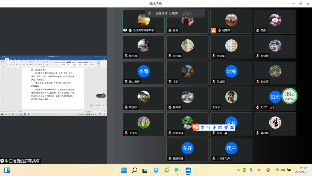 肥城市诗词学会线上公益课堂于2022年4月9日晚八点举行。学会会员及诗词爱好者24人参加了本次学习。袁丽老师、王国华老师、蔡和杨同学第一次参加知识课堂的学习。