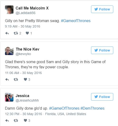 除此之外,粉丝一致给换上山姆妹妹衣服的Gilly和她的勇敢表现打了满分,分分钟“路转粉”。