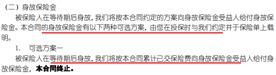 - 身故责任分为两种赔付方式;