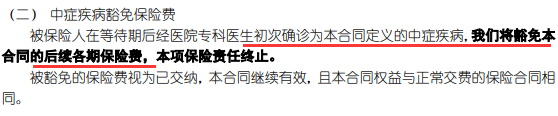 - 保险期内,被保人罹患中症或轻症则可豁免后续保费;