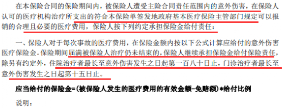 1-被保人因意外伤害产生医疗费用的,按约定报销意外医疗费用,限社保内报销;