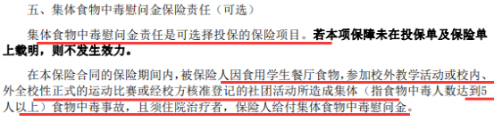 2-被保人因食用学生餐厅食物,参加校外或校内活动所造成的集体食物中毒,且须住院治疗的,给付集体食物中毒慰问金;