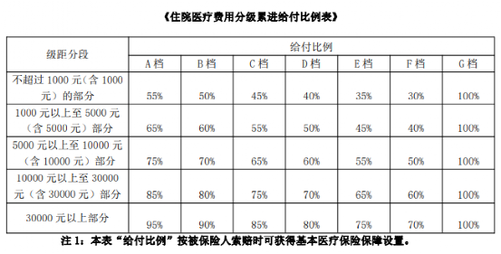 4-以下为《住院医疗费用分级累进给付比例表》,未选择的情况下默认A档。