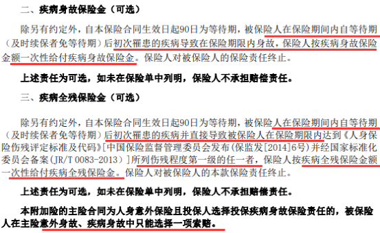 点评:等待期后,被保人因疾病身故或全残的,按照约定的疾病身故或疾病全残保险金一次性给付。