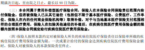 2-保险期结束仍没有结束治疗的,可继续承担90天的住院医疗保险金,但累计保额不超过约定保险金额。