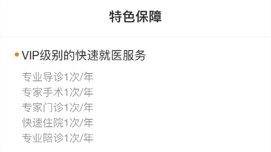 点评:这款产品提供快速就医服务,如专业导诊、专家手术、专家门诊、快速住院等。