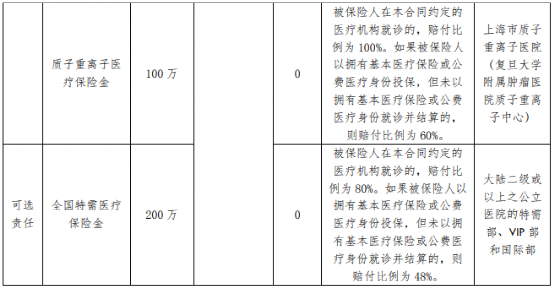 2-质子重离子医疗费用最高100万,无免赔额,100%报销,若以社保身份投保,但未经社保结算,60%报销。