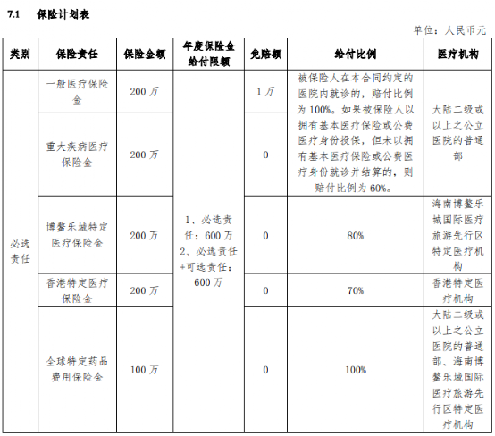 4-博鳌乐城特定医疗费用与一般医疗共用保额,无免赔额,80%报销。