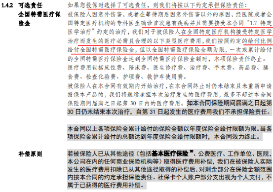 2-全国特需医疗保险金与一般医疗共用保额,最高200万,无免赔额;