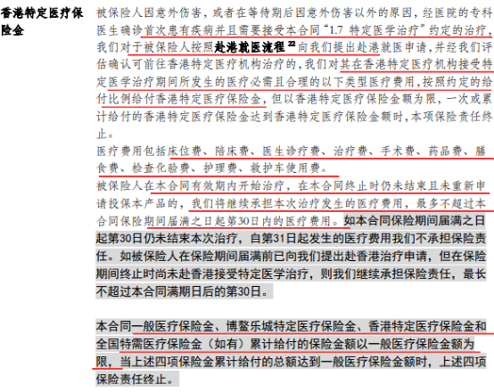 3-香港特定医疗费用与一般医疗共用保额,无免赔额,70%报销。