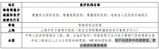 1-被保人初次确诊恶性肿瘤,并在指定医疗机构接受质子重离子治疗所产生的质子重离子医疗费用按比例报销;