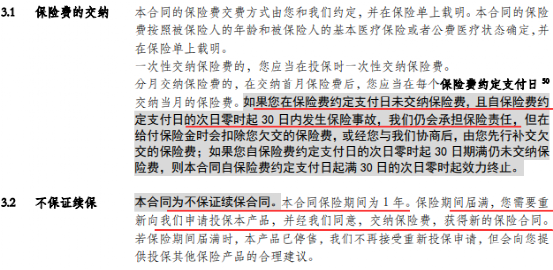 3-分月缴纳保费的,有30天的缴费宽限期,在这30天内出险,保险公司仍承担保障。