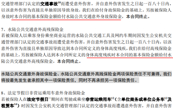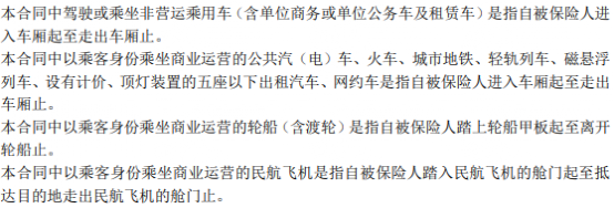3-水陆公共交通意外额外保障中包含了网约车,法定节假日非营用乘用车意外额外保障包含租赁车;
