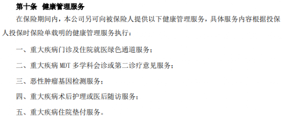 点评:这款产品的增值服务包括重疾住院/门诊绿通、重疾住院医疗费用垫付、重疾二次诊疗、重疾术后护理等服务,还是比较实用的,可以给患者就医提供便利。