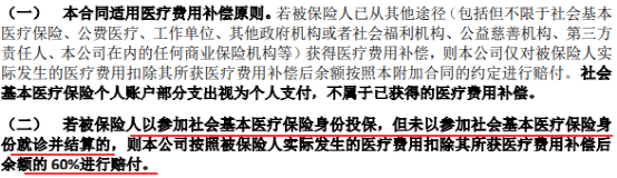 3-癌症院外特定药品费用无免赔额,100%报销,若以社保身份投保,未以社保身份结算,60%报销。